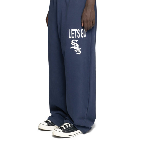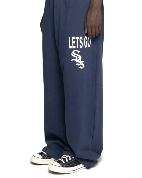 The LG S93 Sweatpants by 93 Sierra/Crosses combine a relaxed silhouette with a bold graphic aesthetic. In deep navy blue with a large “S93” print on the side, they are designed to stand out even with the simplest of looks. These pants are designed for everyday wear, but with an urban character that won't go unnoticed.