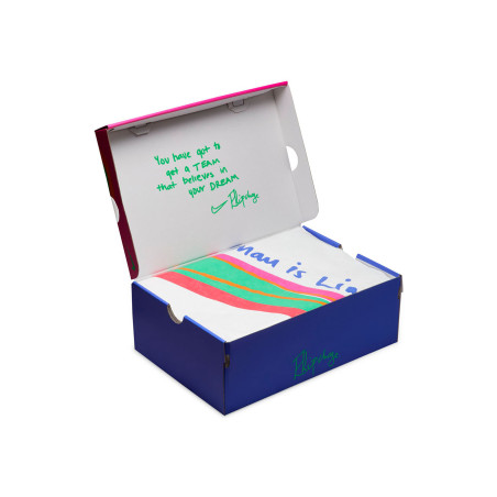 This special edition celebrates the “unstoppable growth” philosophy of legendary marathon runner Eliud Kipchoge. The prints on the insole symbolize this growth, with branches reaching toward the toe, a nod to the tradition of planting a tree at his base camp for every training session completed. The vibrant red clay color gradient pays tribute to the Kenyan soil where he trains, and the typography of the text evokes the fractal patterns of African trees.
