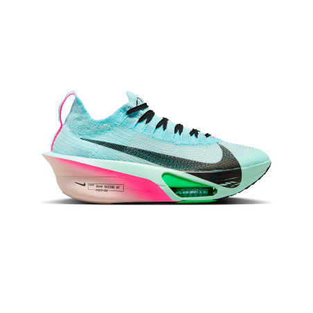 The Alphafly 3 is the lightest model in the series to date (weighing approximately 174 g for a women's size 39 and with an 8 mm drop). It offers unparalleled energy return, with Air Zoom units and ZoomX foam working together to store and return power with every stride. The carbon plate is now slightly wider for greater stability, and the ZoomX midsole is fully connected for smoother transitions. In addition, the Atomknit upper is completely new, designed to improve multidirectional support and breathability.