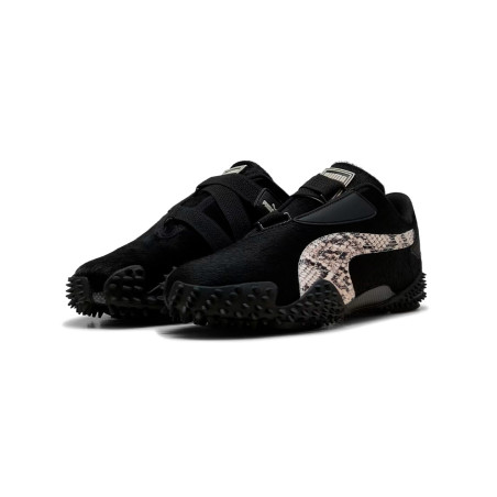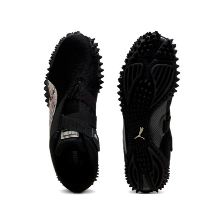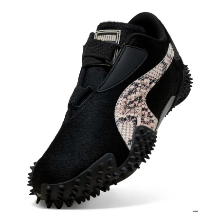 The PUMA x A$AP Rocky Mostro OG reissues a 1999 silhouette with the artist's futuristic and provocative look. Its design combines influences from track shoes with an aggressive and technical aesthetic, marked by a spiked sole and a low, streamlined structure.
