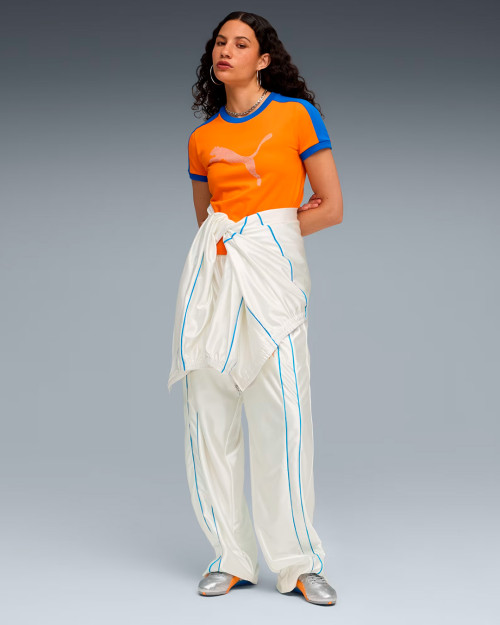 FENTY x PUMA returns to rewrite the rules of fashion. In this latest collection, Rihanna boldly fuses the functionality of soccer with haute couture style, transforming basic sportswear into eye-catching pieces that inject joy and personality into every look. It's a collection that invites you to play your way, without limits or conventions.