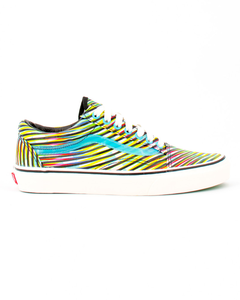 The Old Skool, the Vans classic skate shoe and first to bare the iconic sidestripe, is a low top lace-up featuring towel fabric, re-enforced toe caps to withstand repeated wear, padded collars for support and flexibility, and signature rubber waffle outsoles.