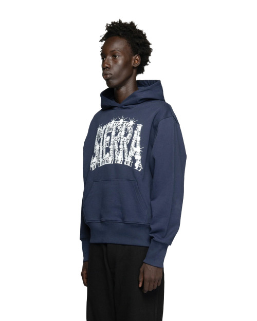La Sierra Bling Hoodie de 93 Sierra/Crosses destaca por su diseño visualmente impactante y tejido cuidado. Confeccionada en 100 % algodón pesado de punto French Terry y forro interior suave, esta sudadera en tono azul marino incluye un estampado “bling” lettering que aporta brillo y actitud sin perder elegancia.